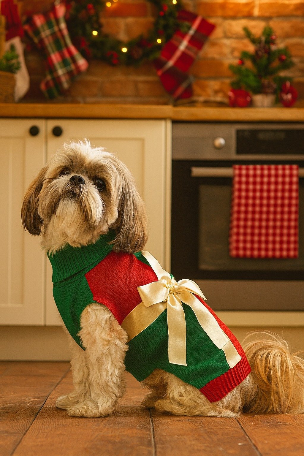 Dress your furry friend in festive style with the Smart Choice Christmas Present Pet Jumper! This adorable red and green jumper features a soft knit design with a shiny gold bow, making your pet look like the perfect Christmas gift. Warm, comfy, and easy to wear for the holiday season.
